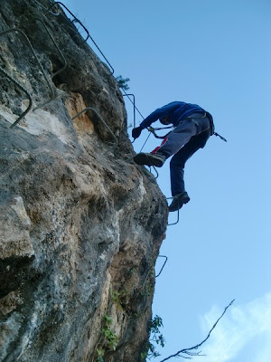 Así como la primera de las Vías la vemos apta para toda la familia y los más pequeños, esta otra Vía a la que hemos bautizado "Sube tu que me da la risa", son palabras mayores, ya que se necesita una forma física aceptable y la altura, verticalidad y desplomes contínuos la convierten en una Vía donde el factor psicológico tiene mucho que decir, así que "Ojo" a quien lleváis.